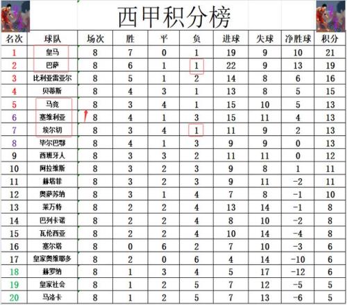 西甲最新积分战报巴萨惨败无力超皇马夺回榜首马竞7轮不败排第5