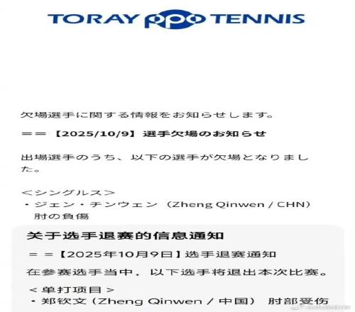 郑钦文,退出WTA500东京站