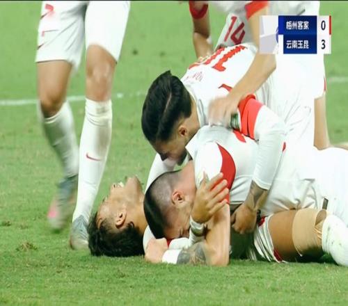 第57分钟,比赛的僵局被打破,罗竞边路传中,廖均健解围不远,恩里克停球怒射破门,0:1!场面占优,但是却被对手率先破门,梅州客家连续做出换人调整,进攻端放手一搏。 第64分钟,没想到再次丢球!云南玉昆将球吊入禁区,恩里克头球摆渡,内内禁区外一脚看似毫无威胁的射门,却慢悠悠地滚进死角,0:2!短时间连续丢球,将梅州客家逼入绝境。