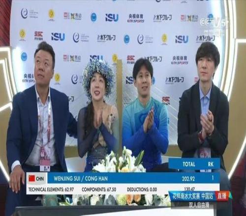 全满贯组合强势归来 作为花滑双人滑史上唯一一对集齐奥运会、世锦赛、大奖赛总决赛等全部顶级赛事冠军的全满贯组合,隋文静/韩聪的回归堪称本次中国杯最大亮点。这是自2022年北京冬奥会夺冠后回归赛场的“第一战”,他们的表现引发全网期待。 短节目中,第一组出场的两人开场单跳出现失误,最终以72.45分暂列第三,这个分数在整场比赛过程中曾长时间稳居短节目榜首,直到最后两对选手登场才被超越,足以见得他们即便久疏战阵,仍具备强劲的竞争力。隋文静赛后坦言,因合乐时间不足一个月,加上久别赛场过于兴奋,节奏上有些压不住,但对于动作的质量仍有信心。