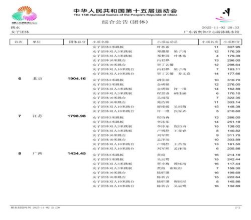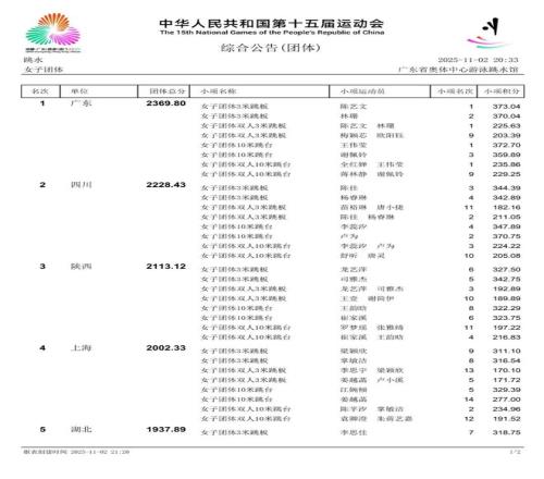全红婵伤愈复出发挥出色 广东跳水队夺得十五运会跳水女子团体项目冠军