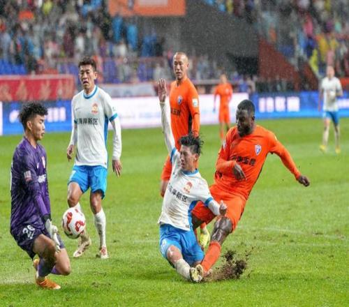 11月2日,云南玉昆队球员内内(左)与青岛西海岸队球员戴维森在比赛中拼抢。新华社记者 彭奕凯 摄 (来源:新华社) |