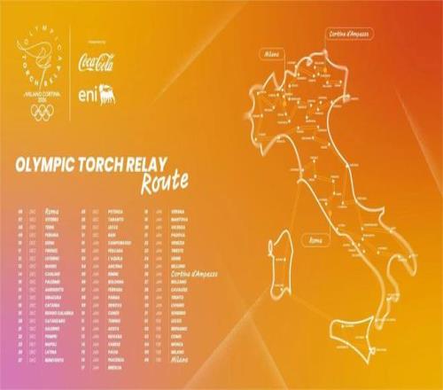 米兰冬奥会火炬传递路线公布,将穿越意大利20个大区110个省份