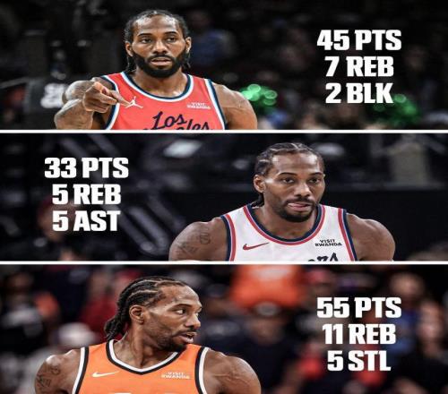 “当代乔丹”力挽狂澜 “乔丹才能救得了快艇!”人群中响起了这样一声讽刺,卡瓦伊·莱昂纳德缓缓站起了身。 在六连胜期间,用“当代乔丹”来形容莱昂纳德一点也不为过。在本赛季之前,莱昂纳德生涯从未在哪一年常规赛中单场拿到超过2次40+,而仅仅在6连胜期间,他就做到了3次。这位并不以超高得分著称的前锋此前生涯最高分是45分,而在6连胜的后三场比赛里,他就两次达到这一分数,对阵活塞一战更是狂砍55分,创造个人得分纪录的同时,也追平了哈登在本赛季早些时候创造的快艇队史单场得分纪录。 “当一个人状态火爆成这样的时候,你真的不知道还能做什么。通常来说,我很少是扮演‘看客’的那个人,但目睹着莱昂纳德的表现,我既想参与其中,又想让他尽情发挥。”哈登在莱昂纳德轰下55分那场赛后说道。 那一战的小卡完全是“战神模式”,第二节25分、第三节26分,三节战罢,他就已经拿到了生涯第一个50分。他一度连续命中11次出手,挡拆冲筐、中距离干拔、持球三分...要知道对面是联盟防守效率第二的活塞队,但莱昂纳德却把比赛打成了投篮训练。 这段连胜期间,莱昂纳德的一个明显变化是增加了三分球出手。他一直都以中距离著称,三分球的产量始终偏低。但在6连胜里,快艇前锋场均出手9.8次三分球,命中率高达44.1%。谈到自己越来越习惯于使用远投武器,小卡表示:“我正试着尽量在比赛中多投三分,然后看看效果如何。不管某一晚我是12中0,还是12中7,结果都会让我变好,就算命中率的数字有所下滑,增加三分对我而言也是好事,这就是目标。”