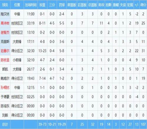 高诗岩出战33分钟,贡献25分7篮板11助攻4抢断,拉满数据栏。其中,第四节命中4个三分球,个个关键,霸气外露。此外,他的正负值为正19,为国内球员之最。可以说,如果没有高诗岩的及时爆发,面对南京队猛烈的三分球反扑,山东队很难在第四节守住领先优势。赛后,高诗岩获评8.5分。就得分而言,似乎偏低了一些。 陈林坚贡献10分4篮板1助攻,从数据上看并不是特别出色。但在山东队内线被罚得所剩无几的情况下,并不擅长防守的陈林坚顶到了四号位的位置上,与其对位的是对手的内线核心马内克。在如此不熟悉的位置,肩负防守重任还能有如此稳定的得分,实属难能可贵。