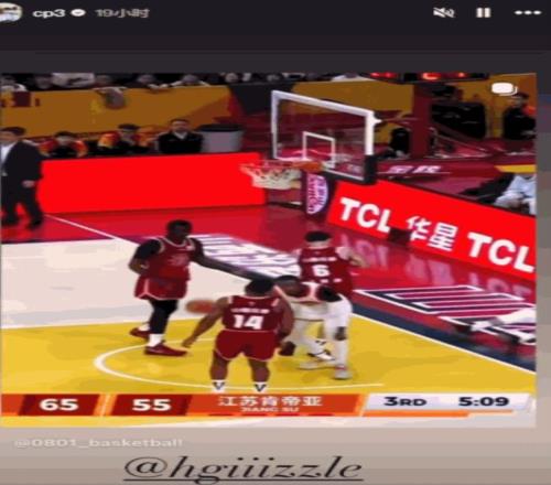 保罗在自己的INS限时动态里转发了目前效力于江苏队的前NBA潜力股贾尔斯的劲爆扣篮动态。 难道大CP3也在考虑我们CBA联赛吗? 点击下方名片关注:贵圈真乱 |