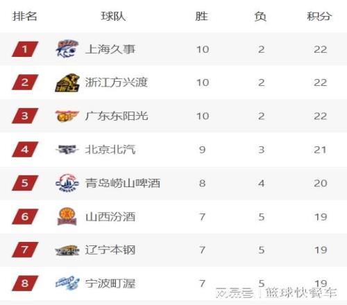 CBA常规赛第12轮全面战罢,辽宁、北京、广厦以及山东等队悉数出战。北京队这一战在主场爆冷遭到山东队绝杀,无缘冲击积分榜榜首。目前积分榜第一名还是上海队,广厦在大胜新疆队后,他们也成功逆袭挤掉广东队,杀到积分榜第2的位置,而广东队则下滑到积分榜第三名。四冠王辽宁队,他们在大胜江苏队以后,成功拿到赛季第7胜,排名也成功杀回积分榜前八,暂居第7名。