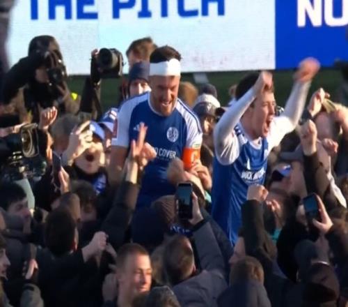 当终场哨响,奇迹正式诞生时,激动的麦克尔斯菲尔德球迷疯狂冲进场内,与球员一起激动拥抱庆祝。 而2位进球功臣,也被球迷高高举起,像英雄般膜拜。这场胜利,对于麦克尔斯菲尔德而言,就像赢下足总杯冠军一样值得狂欢。