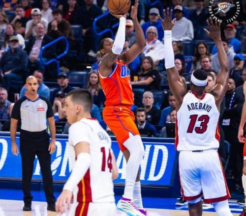 赛季初表现神勇,一度追平当年73胜勇士历史最佳开局的雷霆,随后状态出现起伏,此前连续输给菲尼克斯太阳和夏洛特黄蜂,让球迷大跌眼镜,好在他们及时回到了赢球的轨道,最近两场常规赛接连拿下了犹他爵士和孟菲斯灰熊,稳固住了自己西部第一的排名。 正处于两连胜的雷霆,在这一个比赛日,坐镇主场迎来了迈阿密热火的挑战,本场比赛热火上半场靠着凶悍的防守,一度取得了比分上的领先,不过亚历山大下半场发力后,率领球队瞬间打崩对手,帮助雷霆以124-112完成了对热火的五连胜,希罗则遭遇到了复出之后的三连败。