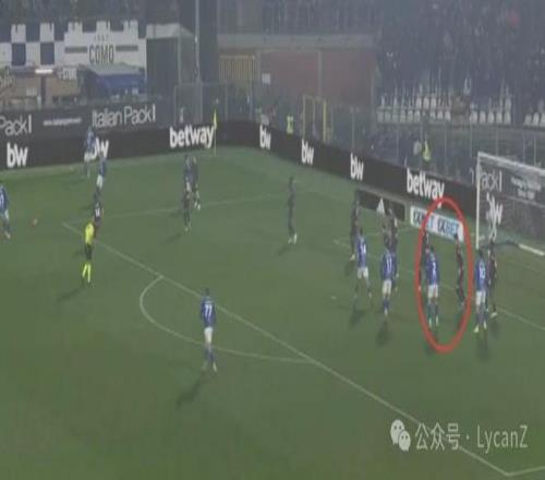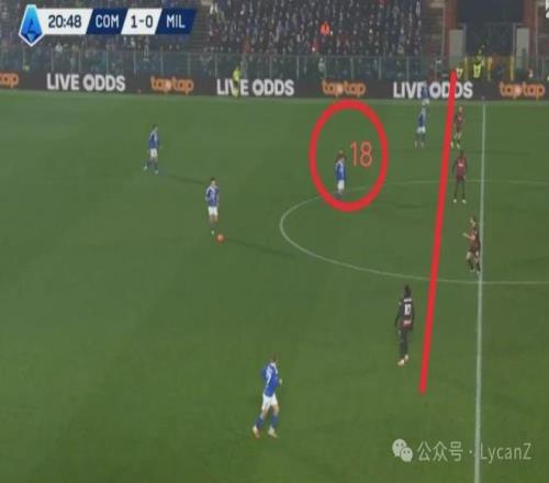 科莫门将布特斯一脚直塞就让队友直接面对米兰的后卫。