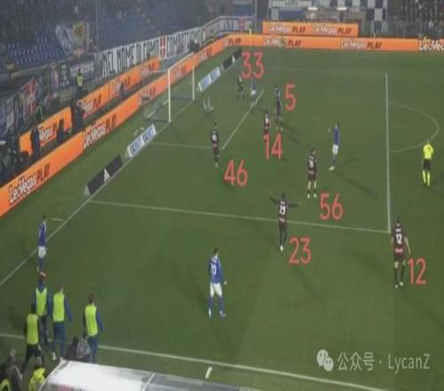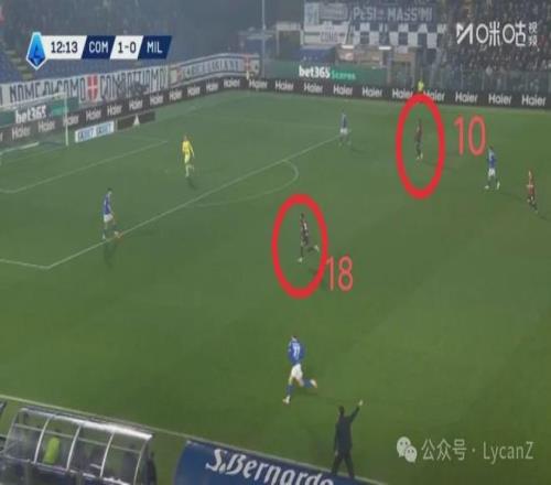 科莫一记斜传打向米兰的左路,靠着锋线两点压制米兰后卫,右后卫范德布雷普特拿球长驱直入畅通无阻并轻松起脚,莱奥换位在左路却没有起到相应的防守作用。直到第55分钟米兰2:1完成反超,阵型全面后撤收缩后,米兰10号才真正开始防守。 早早落后0:1,阿莱格里决定执行高位施压(赛后采访证实),只有恩昆库一人突前显然无法满足要求,于是中场整体都在向前压。